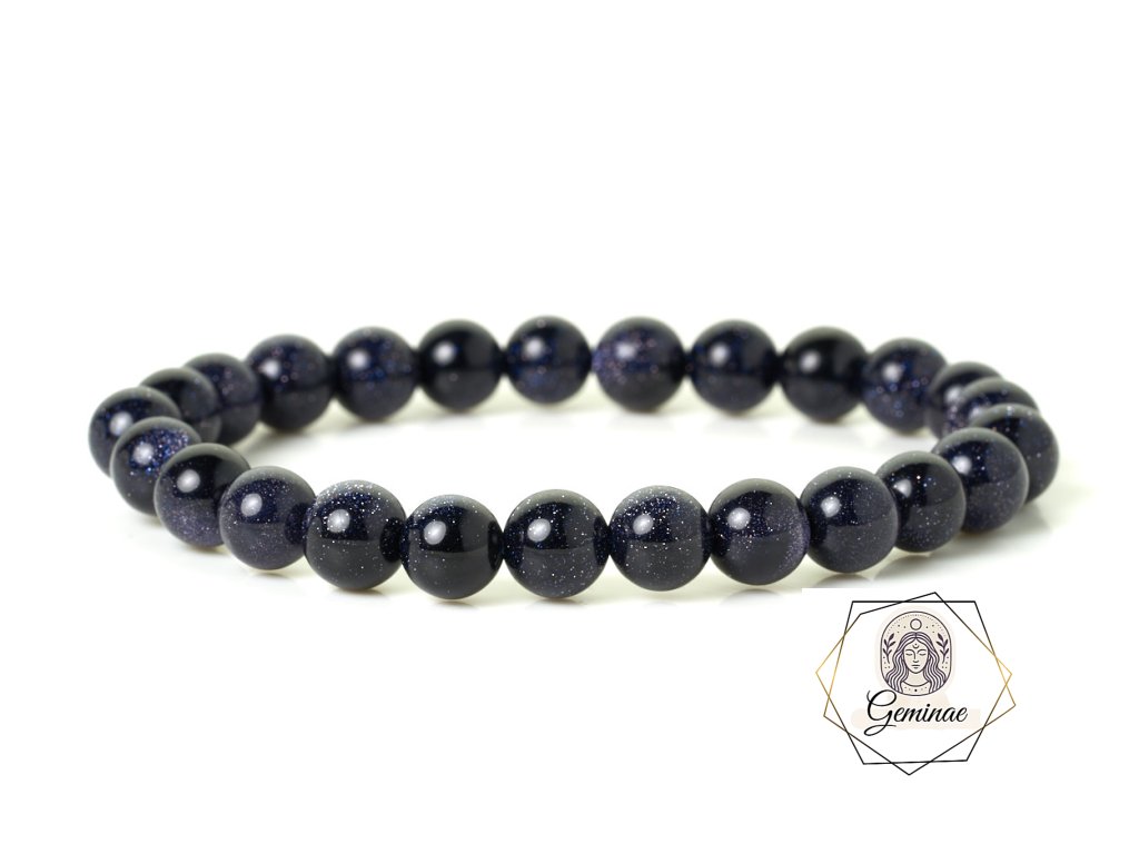 Tento náramek je vyroben z modrého syntetického Avanturinu, známého také jako Arabská noc. Nádherná tmavě modrá barva s jemnými třpytkami připomíná hvězdnou noc, díky čemuž každý náramek působí elegantně a originálně.