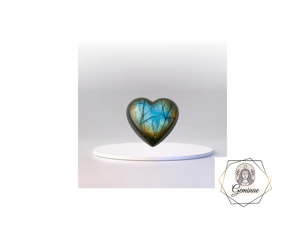 Ve tvaru srdce je labradorit ještě laskavější — propojuje sílu s něhou, odvahu s klidem, intuici se srdcem.